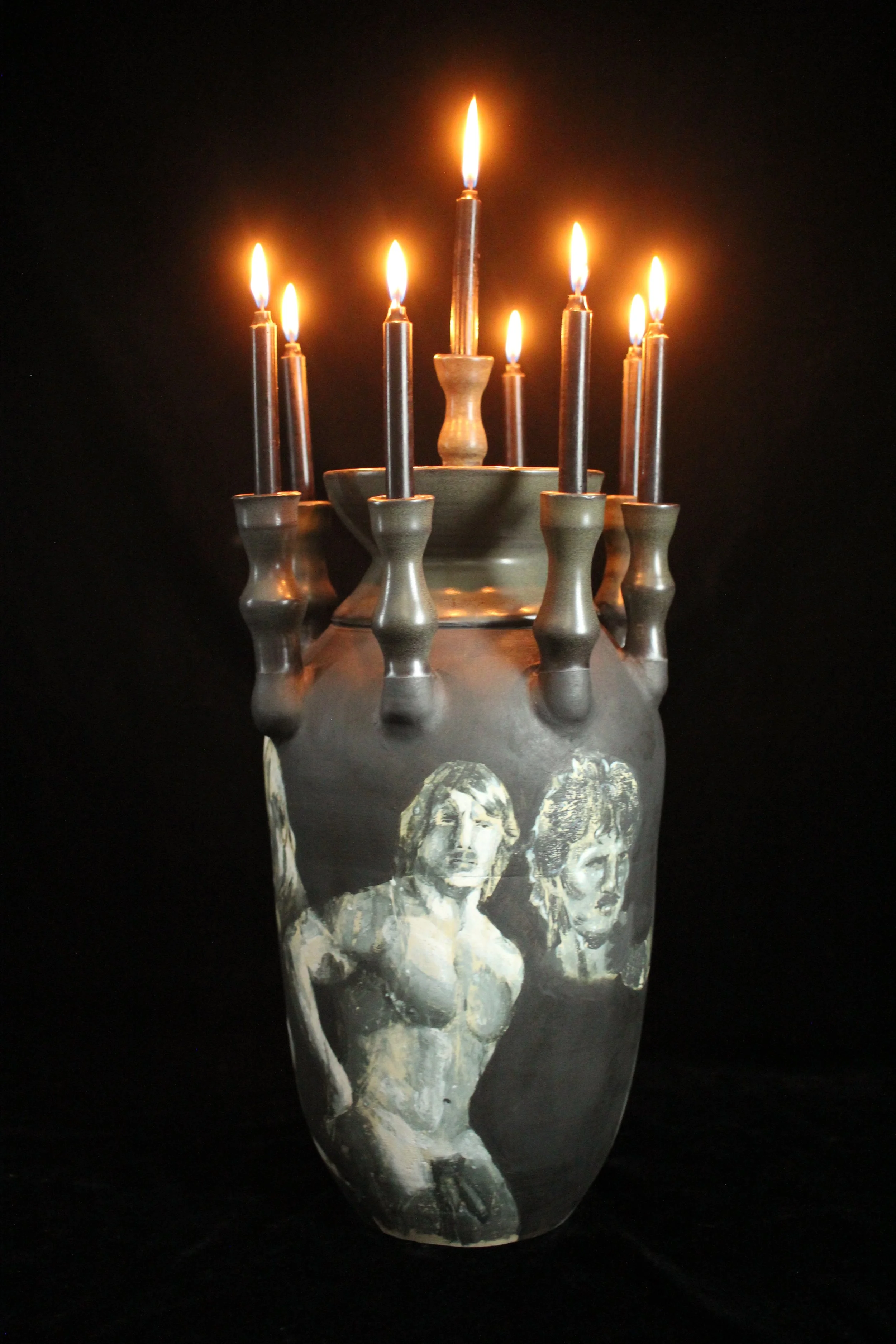 Underglaze painted, glazed Stoneware Jar, Chime candles